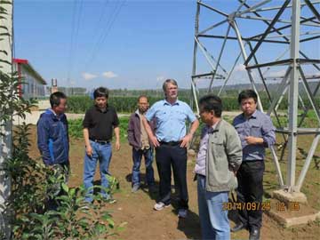 9月24日,農業部全國農技中心節水農業技術處高祥照處長與加拿大國際排灌委員會副主席、農業水分專家Laurie Tollefson在省、縣相關部門領導的陪同下考察了寶雞華圣果業有限責任公司基地。公司副總經理史繼東詳細介紹了基地自行研發的水肥一體化系統、苗木水肥施用情況及未來發展情況。 高處長及Laurie Tollefson對公司的水肥一體化系統了解后稱贊了公司的創新能力,與公司技術人員就水肥施用、管道維護、苗木建設等問題進行了深入交流,提供了許多寶貴意見,并期望公司能夠在創新發展之路上邁出新步伐。