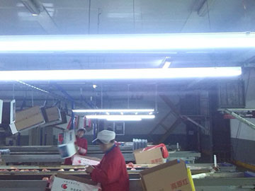 2014新果季來臨之際,華圣果業工廠立足公司照明設施現狀,本著高效、節能、環保的要求,組織人員對分選車間及氣調庫房的照明設施集中進行了改造,達到了預期效果。 項目改造后,庫房照明比改造前節能75%,分選車間照明比改造前節能77.5%,在不降低照明質量的前提下,預計在1年內即可收回改造投入的全部費用。另外,此次使用的照明燈壽命長、啟動快速、即開即亮的特點,極大方便了日常操作,提高了工作效率;而且該燈光衰慢,色溫變化小,即改善了員工的工作環境,更便于分選工嚴格把控質量標準,為產品質量的穩定提供了有力保障。