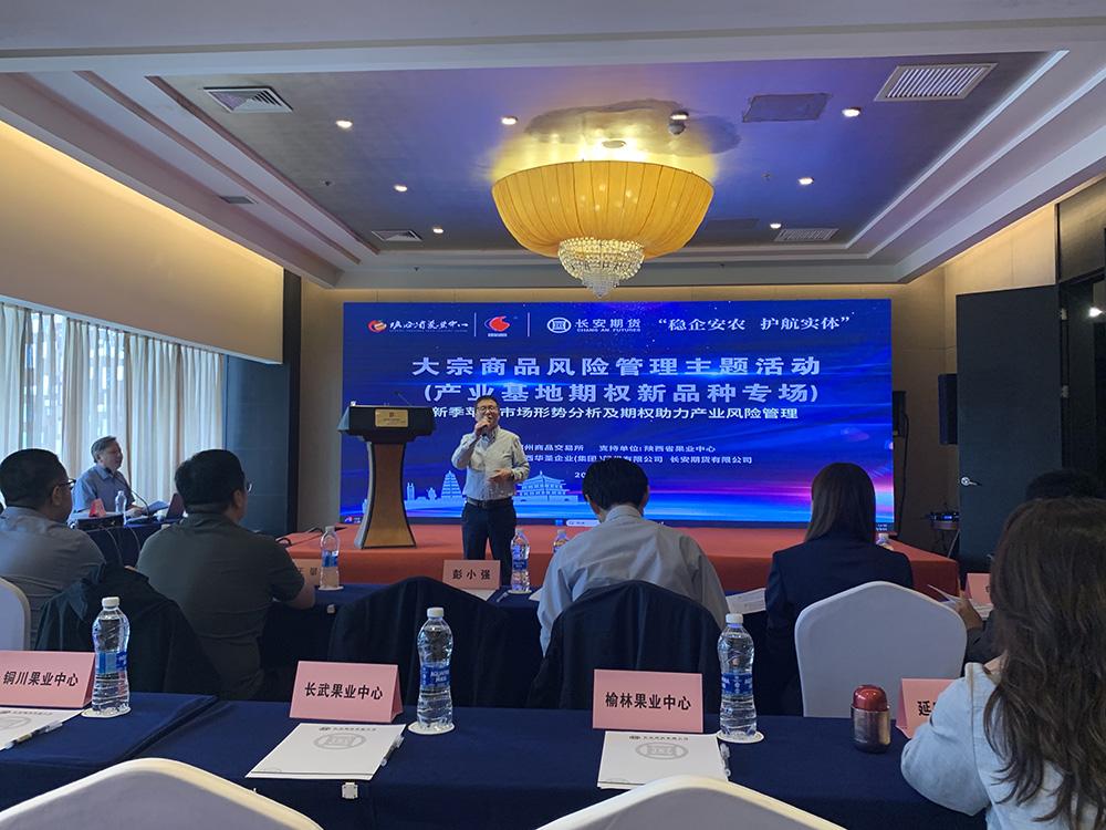 2023-09-26華圣集團圓滿舉辦“穩企安農,護航實體”產業基地服務蘋果中小企業主題活動為幫助蘋果產業梳理舊果季產銷形勢、了解新果季生長情況,學習期權知識,充分利用期權工具降低經營風險,實現穩定經營。9月25日,陜西華圣企業(集團)股份有限公司在鄭州商品交易所、中國期貨業協會、中國中小企業協會的支持下,聯合陜西省果業中心、長安期貨有限公司共同舉辦“穩企安農·護航實體”產業基地會議。此次會議圍繞新果季蘋果生長狀況與市場未來形勢分析展開,參加會議的有各地果業中心負責人、產業企業代表和期貨公司等百余人。陜西省果業中心副主任楊建偉、華圣農業集團執行總經理彭小強、長安期貨副總經理郭蘇婭出席了會議并致辭。會上,陜西省果業中心楊建偉主任總結回顧了過去2022年蘋果產銷情況和氣候因素對蘋果生產的影響,分析并展望2023產季蘋果銷售形勢,對全省中小果品企業提出了切實有效的建議。長安期貨分析師馬舍瑞夫主要介紹了期權基礎知識以及期權套保的介紹,為與會人員講解了期權的基礎知識。華圣集團期貨交易部經理王攀從專業知識角度介紹分享了期權操作中企業應用期權風險管理案例的分析。會議最后,各地果業中心代表分享了新果季蘋果產量、質量的基本情況和本次會議的心得體會。交割庫企業代表交流了對新果季蘋果產銷市場的看法,并就蘋果期權提出了意見和建議。通過與會代表和嘉賓的熱烈討論,加深了蘋果產業從業者對蘋果期權的認識,增加了蘋果期權在西部市場的影響力,有助于實現蘋果產業的高質量發展。