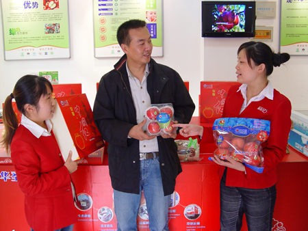 近日來(lái),記者在古城西安看到,以華圣蘋果特有的蘋果紅為主色調(diào),裝修簡(jiǎn)潔、清爽、高雅的"華圣果樂(lè)仕" 連鎖直營(yíng)店就像雨后的春筍,遍布古城西安的大街小巷。這是華圣果業(yè)打開(kāi)國(guó)際高端市場(chǎng)之后,以全國(guó)一線城市為目標(biāo),開(kāi)始了新型的經(jīng)營(yíng)模式,將"華圣"這一品牌延伸至消費(fèi)者的身邊,將農(nóng)產(chǎn)品送進(jìn)社區(qū)而邁出可喜的第一步。 截止2011年9月份,"華圣果樂(lè)仕 "連鎖直營(yíng)店在西安就有20家開(kāi)張營(yíng)業(yè),北京有3家直營(yíng)店開(kāi)張營(yíng)業(yè)。并且運(yùn)行良好。記者在西高新區(qū)、北郊經(jīng)開(kāi)區(qū)、曲江開(kāi)發(fā)區(qū)以及楓林綠洲等其他高中端社區(qū)華圣果樂(lè)仕直營(yíng)門店看到,所銷售的華圣蘋果包括適宜家庭消費(fèi)的小包裝產(chǎn)品:輕量裝3枚、4枚裝、一提就走系列、稱重產(chǎn)品,以及饋贈(zèng)友人、家庭的禮品裝、中國(guó)紅禮盒、金牌優(yōu)悅禮盒、華果紅禮盒、9KG套箱等,來(lái)店購(gòu)買華圣蘋果的客人絡(luò)繹不絕。 是什么原因讓這些華圣果樂(lè)仕直營(yíng)門店如此風(fēng)生水起呢?陜西華圣果品營(yíng)銷管理有限責(zé)任公司經(jīng)理張力告訴記者說(shuō):“:華圣果樂(lè)仕直營(yíng)門店本著"讓全球的消費(fèi)者吃到最好的蘋果"的理念和目標(biāo),以國(guó)際市場(chǎng)的標(biāo)準(zhǔn)傾力打造國(guó)內(nèi)市場(chǎng),以便讓更多消費(fèi)者可以安心、便利的吃上純天然、無(wú)公害、安全放心的優(yōu)質(zhì)蘋果。所以華圣果樂(lè)仕直營(yíng)門店以高端消費(fèi)群體為主要目標(biāo)客戶,2011年以西安市場(chǎng)為主,北京、上海為試點(diǎn)目標(biāo)50家,如今年整體運(yùn)行情況良好,下年度將進(jìn)一步加快開(kāi)店速度,爭(zhēng)取在全國(guó)一線城市達(dá)到300家。”