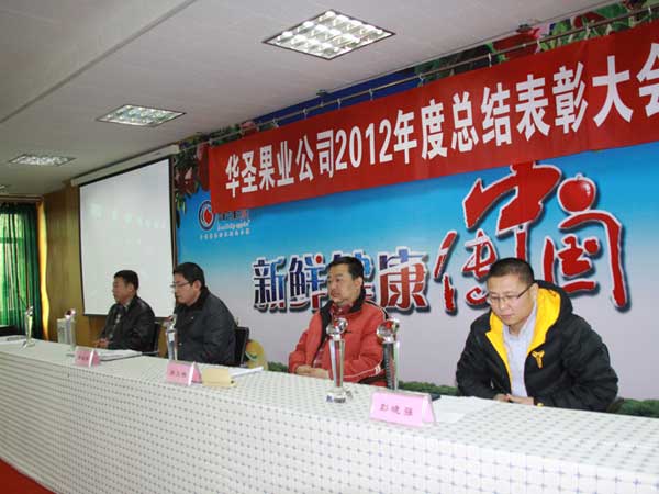 2013年2月6日上午10點(diǎn),在果業(yè)公司二樓培訓(xùn)中心多功能會(huì)議室隆重召開(kāi)了華圣果業(yè)2012年度總結(jié)表彰大會(huì)。出席本次會(huì)議的有:果業(yè)公司領(lǐng)導(dǎo),國(guó)內(nèi)營(yíng)銷(xiāo)公司和三農(nóng)科技服務(wù)公司負(fù)責(zé)人以及員工代表、果業(yè)工廠全體員工。