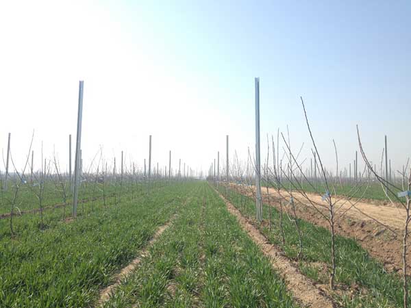臨清市地處東經(jīng)115°42′,北緯36°61′,海拔29~38m,屬溫帶季風(fēng)氣候,年均降雨量550mm,年日照2661.7h,果園所處劉垓子鎮(zhèn)土壤類型為潮土。由于該區(qū)域此前從未栽植果樹,果農(nóng)對(duì)果樹栽培知識(shí)缺乏了解,技術(shù)人員根據(jù)不同區(qū)域不同的氣候條件和土壤環(huán)境制定對(duì)應(yīng)的技術(shù)指導(dǎo)方案,并不時(shí)地和果農(nóng)進(jìn)行溝通和交流,向果農(nóng)詳細(xì)的傳授果樹栽培知識(shí)。