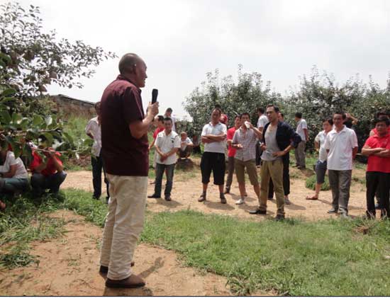 由于寇賀東這幾年種果樹種出了名氣,吸引了眾多省市縣有關果業(yè)專家和附近村民、甚至外縣果農(nóng)的眼球,紛紛前來考察和觀摩學習。就在8月3日,在華圣三農(nóng)公司富縣總站和黃陵總站的協(xié)調(diào)組織下,富縣各鄉(xiāng)鎮(zhèn)的近百名果農(nóng)乘車前來寇賀東的“華圣畝產(chǎn)萬斤示范園”取經(jīng)。在聽了老寇的經(jīng)驗介紹,看了他家果園的長勢情況后,大家對他能在陜北黃土旱塬上種出畝產(chǎn)萬斤的果園贊不絕口,說常聽到“施華圣配方肥,畝產(chǎn)萬斤不是夢”的宣傳,還認為不可能,這下親眼見到畝產(chǎn)萬斤園,回去后就照老寇的辦法干,施用華圣配方肥,加大投入和科學管理力度,爭取把自家果園畝產(chǎn)提上去。