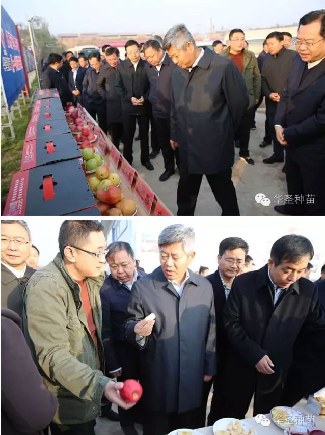 參觀過程中,徐書記對我司在矮化自根砧蘋果栽培模式上和蘋果新品種的推廣工作上取得的成績給予高度評價,希望公司不斷發展壯大,在果品行業中永遠豎起“華圣”這個標桿,在蘋果產業轉型升級中發揮更大作用。