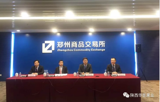 萬眾矚目的蘋果期貨合約于2017年12月22日在鄭州商品交易所正式掛牌交易。陜西華圣企業(集團)股份有限公司.果業公司做為企業代表參加了上市儀式。證監會副主席方星海等領導出席現場發布儀式,華圣果業總經理孫曉冰受邀出席并代表全國蘋果經營企業發言。華圣交割代碼Ap1801