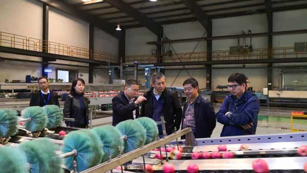在公司執(zhí)行總經(jīng)理彭小強(qiáng)、果業(yè)工廠總經(jīng)理李蕾陪同下,喻總經(jīng)理、范副局長(zhǎng)一行參觀了氣調(diào)倉(cāng)儲(chǔ)情況、工廠標(biāo)準(zhǔn)化生產(chǎn)流程,隨后在華圣果業(yè)展廳總經(jīng)理彭小強(qiáng)詳細(xì)介紹了華圣果業(yè)的發(fā)展?fàn)顩r、規(guī)劃以及全產(chǎn)業(yè)鏈種植、生產(chǎn)、銷售模式。